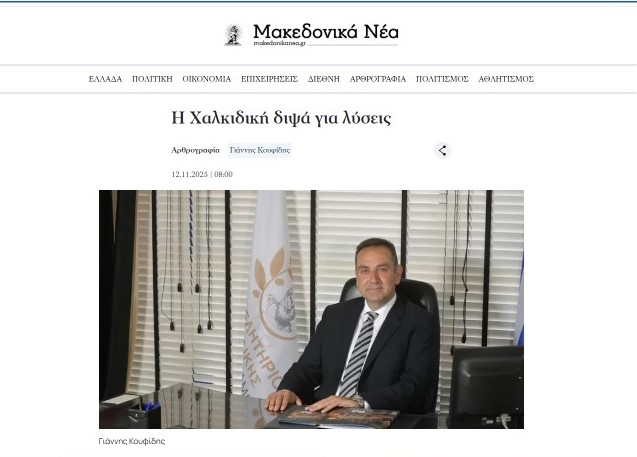 Το Άρθρο μου με θέμα «Η Χαλκιδική διψά για λύσεις» φιλοξενήθηκε πρόσφατα στα Μακεδονικά Νέα και ευχαριστώ θερμά το έγκριτο μέσο για αυτό.