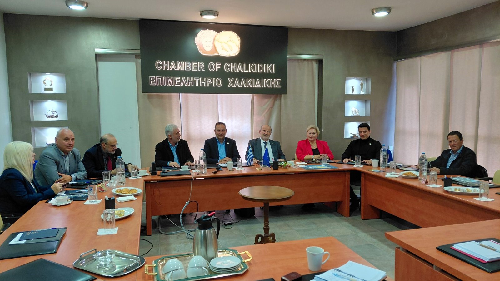 Κλιμάκιο της Γενικής Συνομοσπονδίας Επαγγελματιών Βιοτεχνών Εμπόρων Ελλάδας, αποτελούμενο από τον Πρόεδρο Γιώργο Καββαθά, τον Α’ Αντιπρόεδρο Δημήτρη Βαργιάμη, τον Γεν. Γραμματέα Σωτήρη Κοτσαμπά, τον Εκτελεστικό Αντιπρόεδρο Βασίλη Καμπάνη, στενό φίλο και συνεργάτη ετών, καθώς και τη συνεργάτη της Διοίκησης Στέλλα Τσιάμη, μας επισκέφθηκε την Τετάρτη 12 Νοεμβρίου 2025, στο Επιμελητήριο Χαλκιδικής – Halkidiki Chamber.