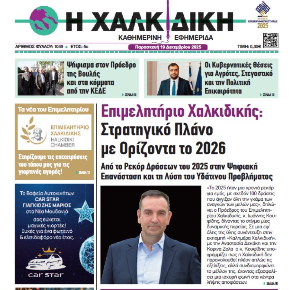 Συνέντευξη μου φιλοξενήθηκε στην εκπομπή “Καλημέρα Χαλκιδική” στο ράδιο Star 95.5 και την εφημερίδα “Η ΧΑΛΚΙΔΙΚΗ” με θέμα τον απολογισμό δράσεων του Επιμελητηρίου Χαλκιδικής για το 2025 και τον προγραμματισμό για το 2026.